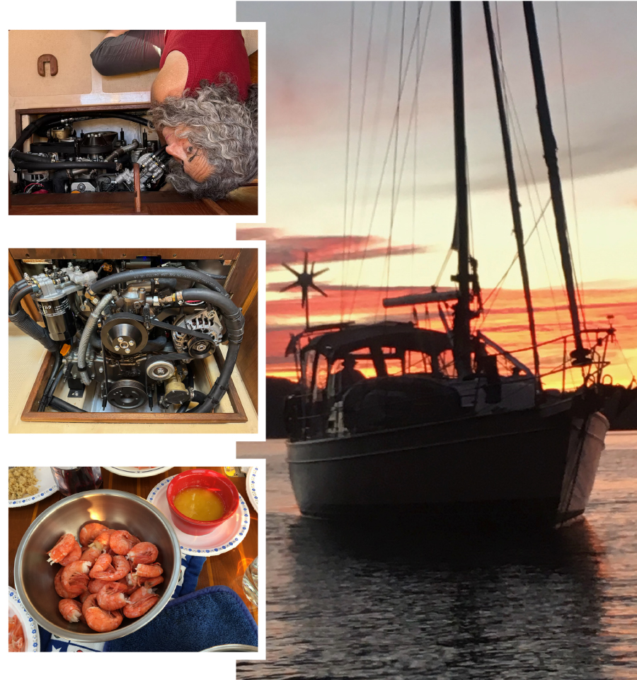 All of this asking—am I done yet?—has made me consider (after only 20 summers aboard), whether boat projects are ever quite complete. And it has also made me realize that boats (or houses or gardens or careers or relationships, or people) have projects, or are projects, that will never be done. Because it’s more than just scrubbing. It’s more than making things shine (though making things look beautiful can, indeed, be satisfying). It’s about making things work, and how things work can change with time, innovation, and discovery. The realities of ‘living the dream’ are sometimes not so dreamy—it’s not all cocktails (or shrimp cocktails) in the cockpit or sailing into the sunset—but maybe that makes the reality even more rewarding.