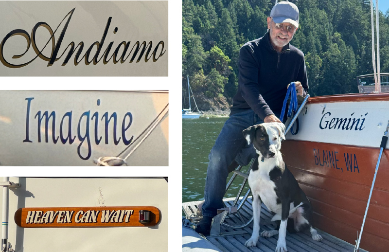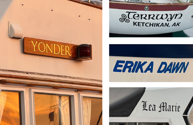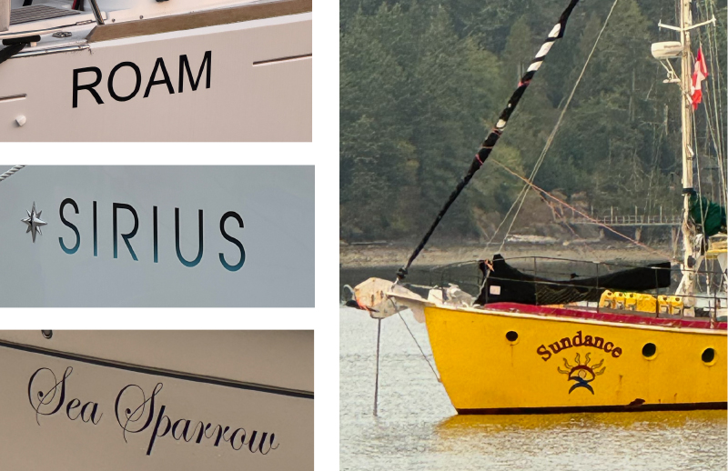 For so many, buying a boat is the realization of a dream and naming it (no, it doesn’t have to be gendered, but more on that later) is an important statement about that dream. Here are just a few boat names I’ve seen (or heard on the VHF radio) over the years: Sea Sparrow, Osprey, Peregrine, Heaven Can Wait, Wayfinder, Wander, Yonder, Tethys, Trinity, Sirius, Loki, Ta Da, Isobar, Providence, Adventuress, Imagine, Waitabit, Winter Solstice, Gypsy Spirit, Wind Dancer, Rendezvous, Moondance, Glorybe, Gemini, Seeker, and Sundance.